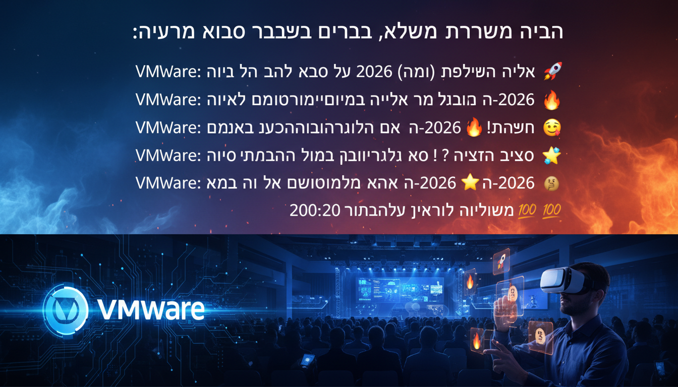 האירוע הראשי, VMware Explore 2026, יהיה בלאס וגאס בסוף אוגוסט ובתחילת ספטמבר. מדובר בארבעה ימים שלמים של טירוף טכנולוגי, עם מאות סשנים והרצאות על כל דבר אפשרי. הרישום מתחיל בסוף אפריל, אז כדאי לעקוב.